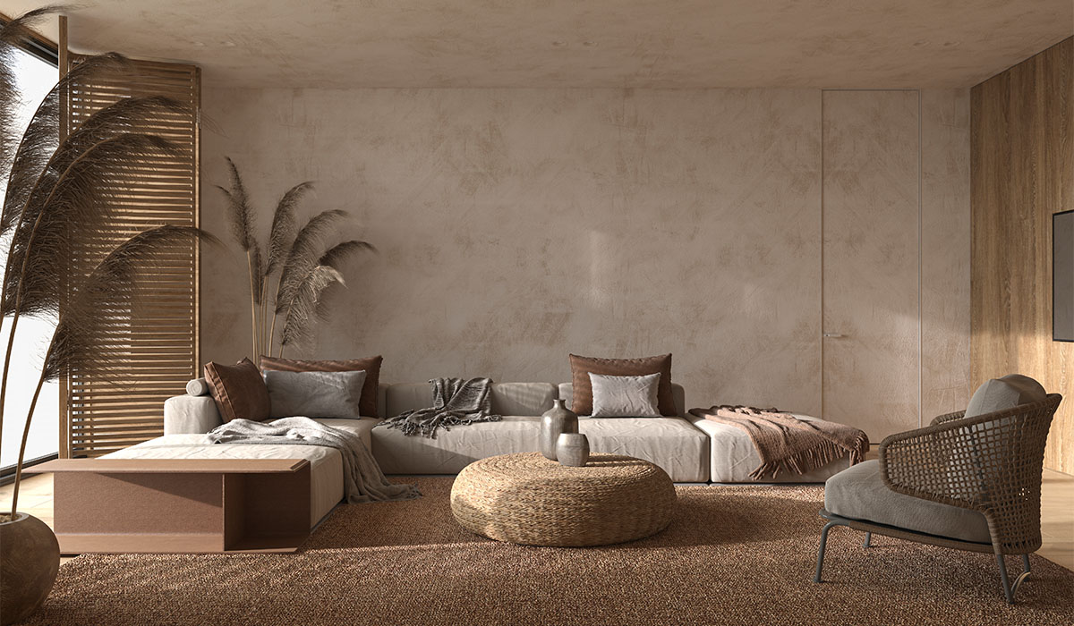 - Wabi-sabi – естетика недосконалості, натуральні поверхні, ефект легкої незавершеності.