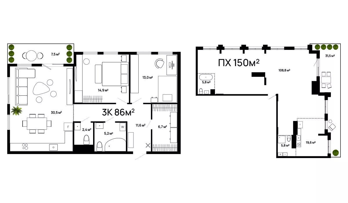 - Просторі холи з лаунж-зонами. Дизайнерські холи створюють приємне перше враження і комфорт щодня. Тут ви можете зустріти гостей, розважити діток чи просто попрацювати або почитати книгу на самоті.