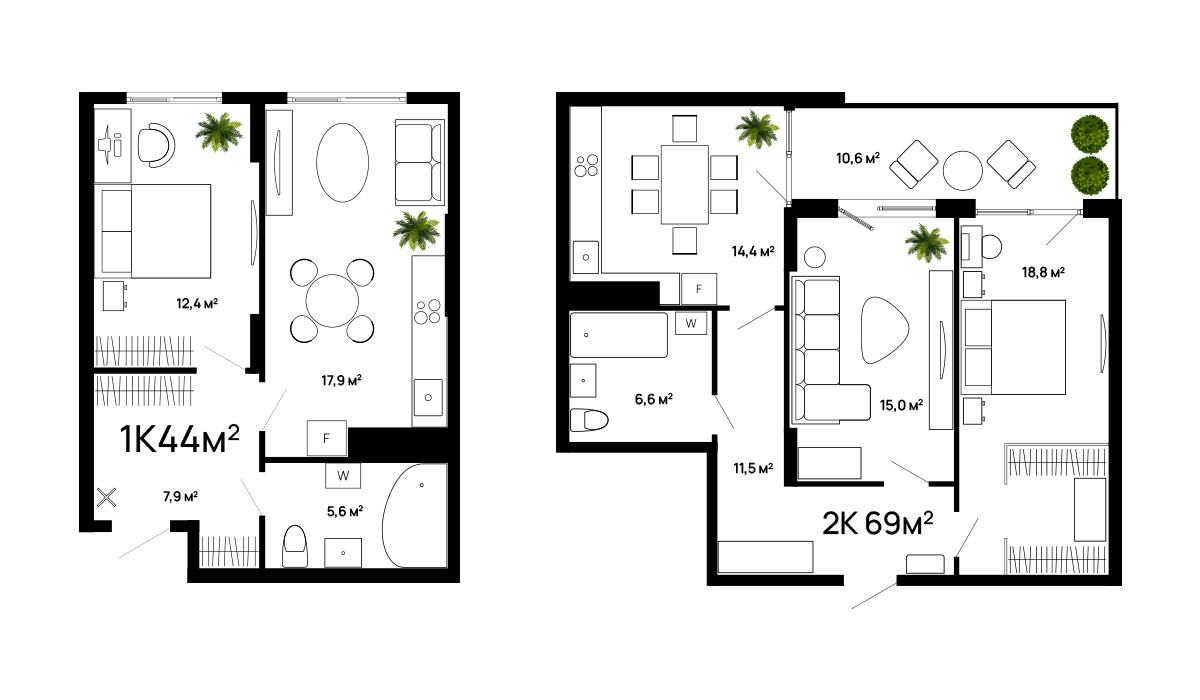 У житловому районі Manhattan UP представлено різноманітні планування квартир – від затишних однокімнатних до просторих пентхаусів. Усі вони мають продумане зонування, панорамні вікна, з яких відкриваються незабутні краєвиди. Тут є можливість реалізувати будь-які дизайнерські ідеї.