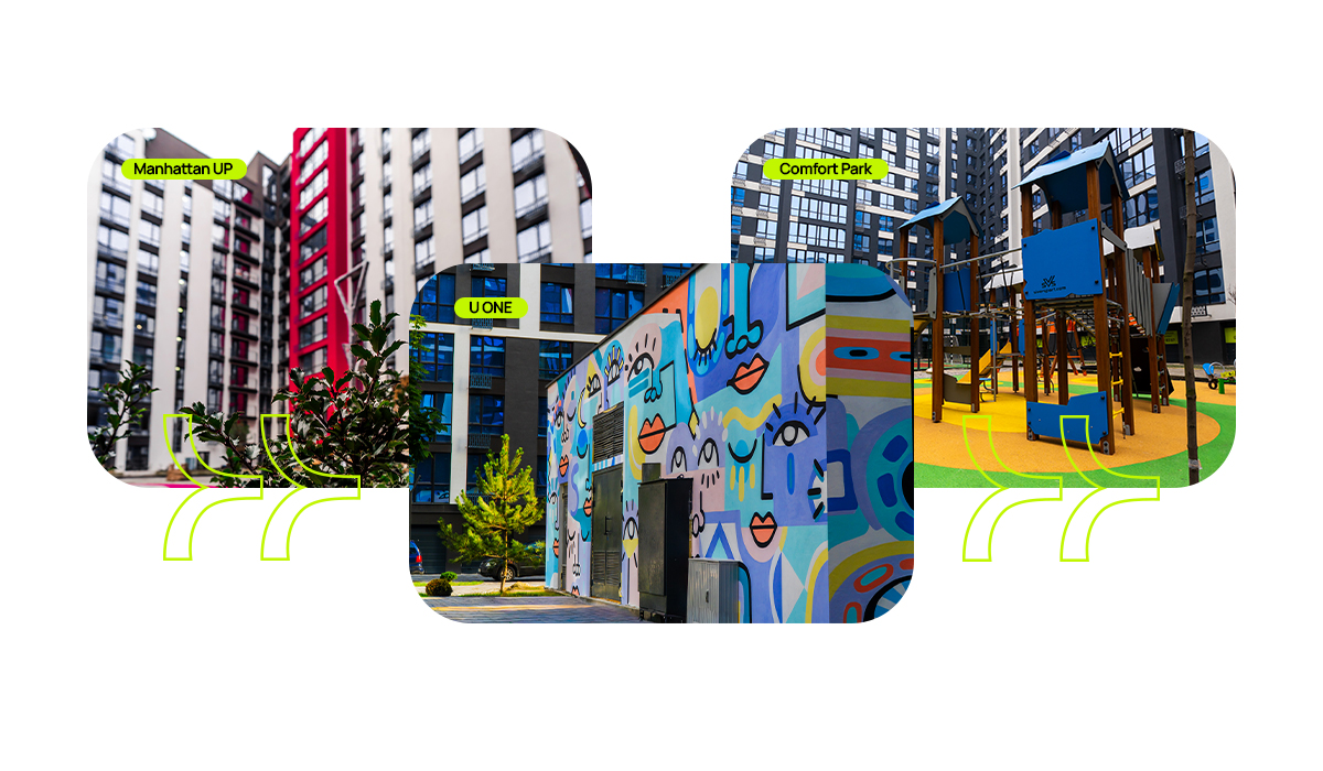 Ми проєктуємо житло з увагою до деталей: продумана інфраструктура довкола, зручна транспортна доступність, зелені зони та облаштовані внутрішні двори, дитячі та спортивні майданчики, сучасні підземні паркінги й безпечні простори для відпочинку формують простір, де комфорт і затишок відчуваються щодня.