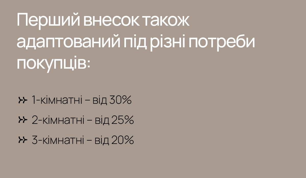 У 2026 році забудовники продовжать пропонувати покупцям вигідні умови розтермінування. Це допомагає зробити покупку житла доступнішою. Типові умови на ринку Франківська: