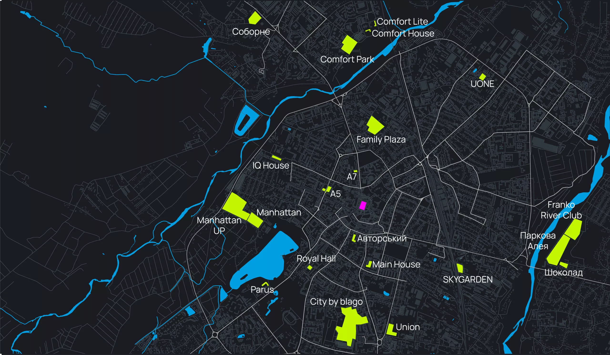 Про активний розвиток житлової забудови свідчать офіційні рейтинги: за версією LUN та Forbes Ukraine, компанія blago з Івано-Франківська посіла 2 місце серед забудовників України за кількістю зданого в експлуатацію житла. Важливо, що цей результат перевищив показники навіть великих компаній із міст-мільйонників. Така динаміка – пряме свідчення не лише темпів будівництва, а й попиту на житло в Івано-Франківську.