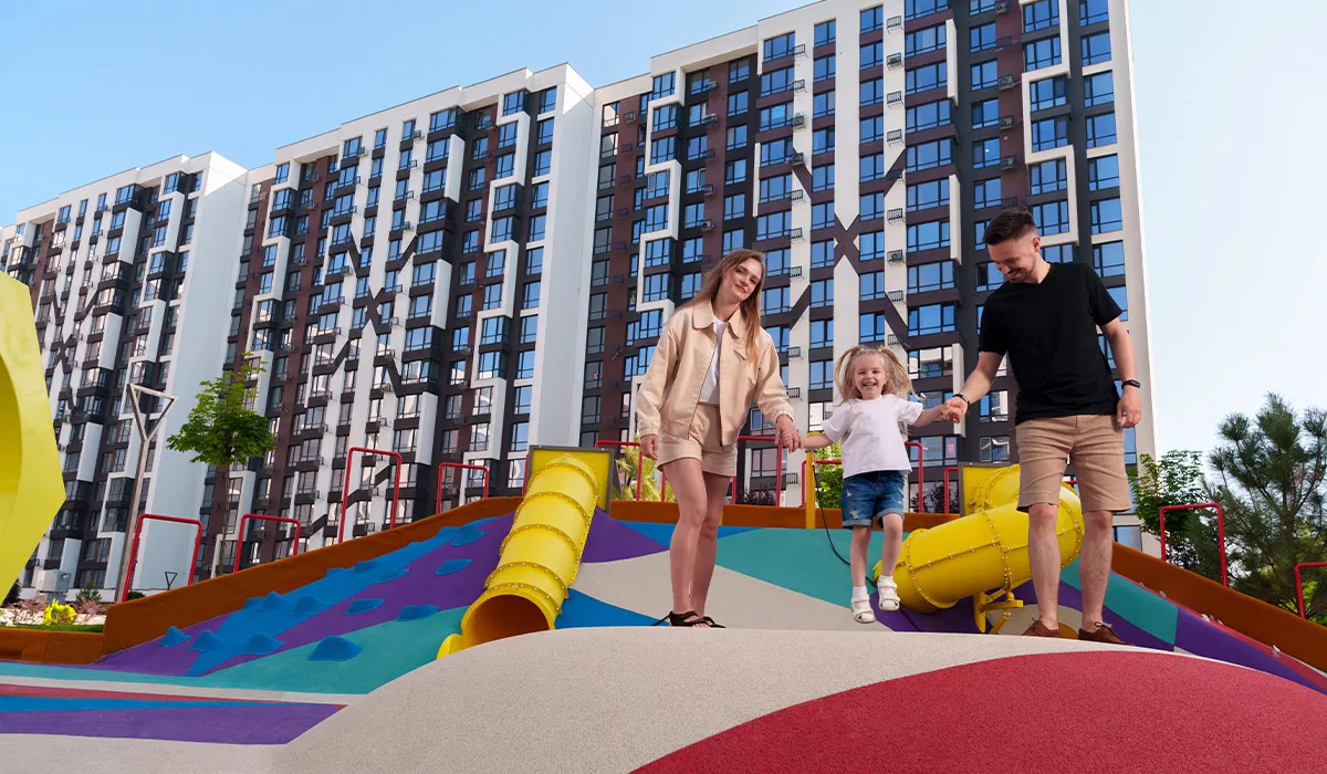 - різні формати житла — від компактних квартир до варіантів із терасами чи патіо;